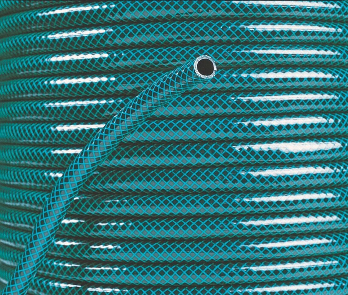 Garden Hose Pipe 15M Reinforced Braided PVC Watering Green Reel 15 Metre 1402740